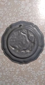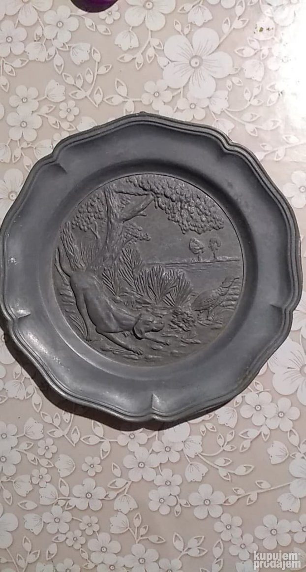 Stari metalni tanjir sa lovačkim motivom ptičara izradjen je od nekakve legure (predpostavljam da je kalaj ili kositar) i veoma lici na tamičarski trofej.