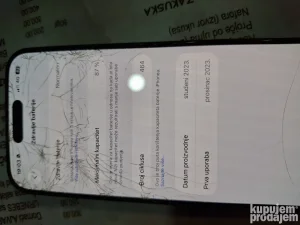 Iphone 15pro 12/256. Puko ekran kao ste se vidi na slici ali telefon radi bez greske. Vise informacija na broj 0621506888