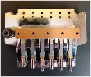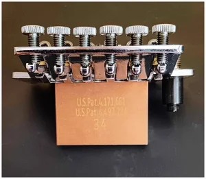 ga setapujem koristeci lose inbuse. Blok Floyda je promemenjen i stavljen nov veci i masivniji Blok od cistog mesinga (Brass) narucen z inostranstva 34MM na kome pise inace kao na slici US. Pat no. . . poboljsava stabilnost i daje bolji sustain Bridga itd. Uglavnom ovaj Floyd Rose nemate nigde u ponudi i necete ga kod nas nigde naci jer ja sam ga skinuo sa gitare zbog nekog projekta na kraju mi je ostao visak. Ovo sam sve detaljno napisao jer ne volim nikom nista da
