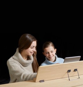 - Connect your smartphone or tablet via Bluetooth® and practice with audio from apps routed through the piano’s speaker system
