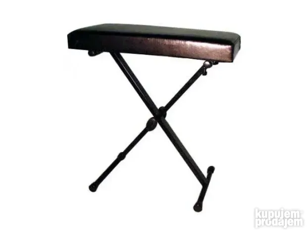 Stolica za klavijaturiste sa X sklopivim nogarama. Podesiva visina u 4 (52, 58, 62 i 65cm) pozicije sa sigurnosnim zavrtnjem. Dimenzije sedišta: 60 x 32cm. Težina: 4.8kg. Boja: crna.