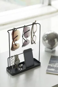 Karakteristike: Zgodno postolje za naočare za sunce i satove, nakit i slično. Možete složiti do 4 naočare za sunce, takođe i nasloniti mobilni telefon, ostaviti prstenje, okačiti narukvice.