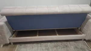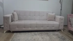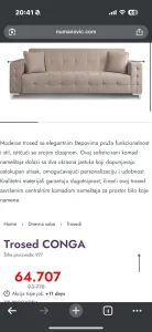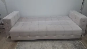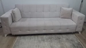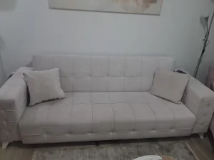 Trosed je kao nov, urađeno hemijsko čišćenje, ima tri rupice što uživo nije strašno, plaćen 65000 din. krem boja.