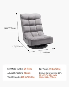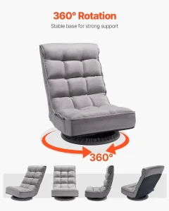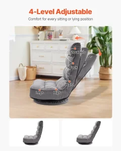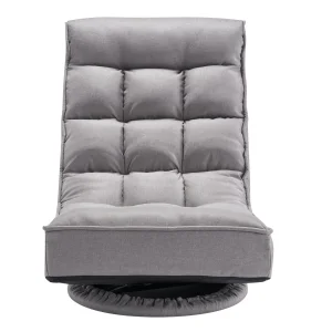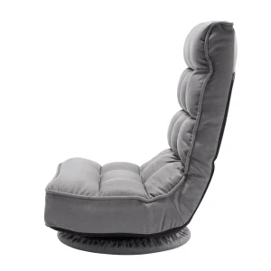 Gejmerska podna stolica siva, okretna podna stolica od 360° sa 4 podesiva položaja, sklopivi naslon i lumbalna podrška, sklopiva video sofa na razvlačenje za gledanje televizije, čitanje, igranje igara
