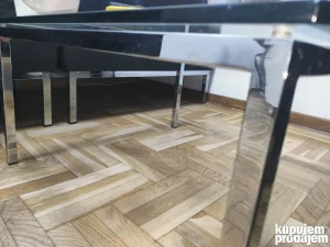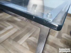 Kozne fotelje + stakleni sto, metalna osnova hromirama na svemu, kvalitetno ocuvano.