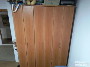 Garderober u dobrom stanju . Visina 215 cm širina 150 cm dubina 50cm . Ima šestoro vrata.   Ima dosta polica i jednu šipku za vešanje. Potrebno rastaviti i tako nositi. Jedinontako može da izadhe iz sobe. Sve ostale informacije na tel.