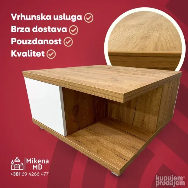 Na prodaju stočić napravljen od najkvalitetnije Egger iverice, sa dve fioke dijagonalno