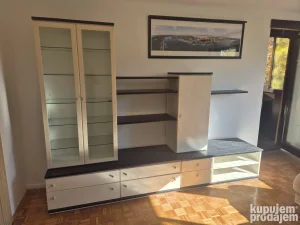 Na prodaju zastakljena vitrina sa fiokama i policama. Deljiva je. Delovi se mogu koristii pojedinacno ili kao celina.