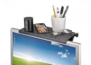 Na prednjem delu polica imate spušteni deo kojim policu kačite uz monitor ili TV ekran