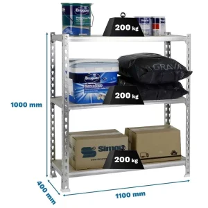 Simon Rack Maderclick Superplus metalna polica sa 3 nivoa, 100 x 110 x 40 cm, nosivost 600 kg – pocinkovana