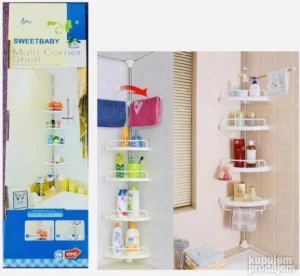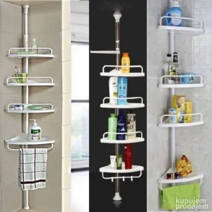 Praktična polica za montažu u uglu kupatila je izuzetno korisna stvar koja će Vam olakšati život u kupatilu. Ona je veoma jednostavna za montažu i možete je podesiti po visini prema Vašim potrebama. Sa oba kraja poseduje lepljive delove za zalepivanje za plafon i kadu. Sa svojih 4 police dimenzija 20x20cm, ovaj proizvod je pogodan za držanje svega što se inače nalazi u kupatilu. Boja je bela, a cev je od aluminijuma. Dimenzije su 33,5 x 21,5 x 100-260cm, a nosivost je 16kg. Ukoliko želite da imate organizovano i praktično kupatilo, ova polica je pravi izbor za Vas.