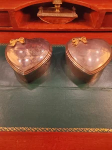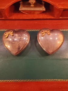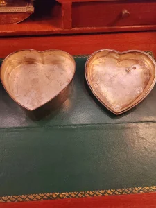 Dve Retro Metalne Posrebrne Kutije za Nakit Srce