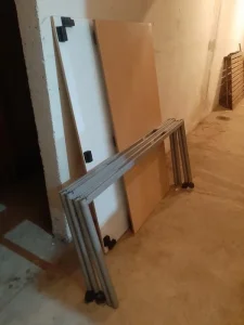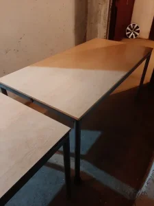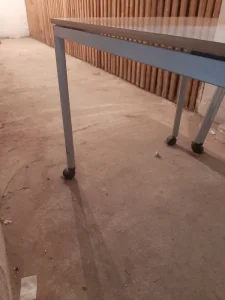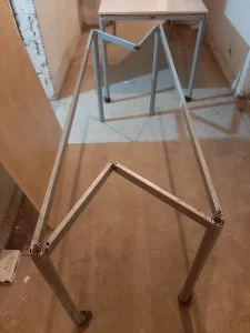 Poseduju po dva tockica sa kocnicama sa jedne strane radi lakseg pomeranja. Metalna konstrukcija i table odlico ocuvane! Jaki i izdrzljivi!