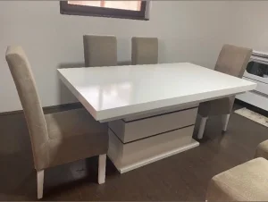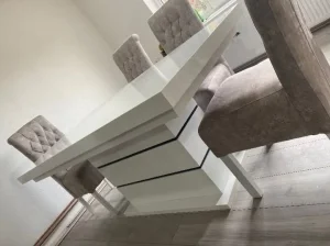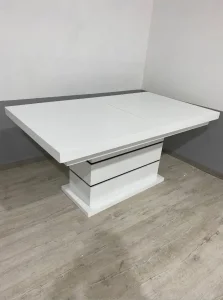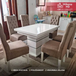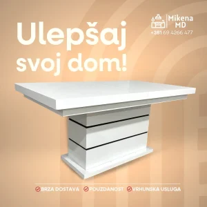 Trpezarijski sto napravljen od kvalitetnog medijapana u beloj boji. Idealan za dnevne ili trpezarijske prostore.