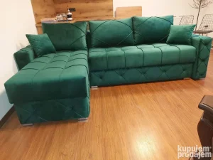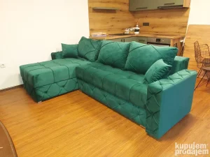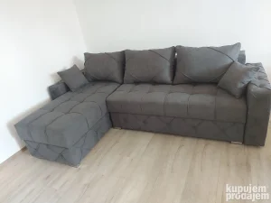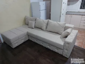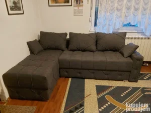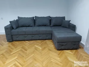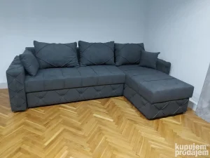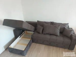Ugaona garnitura dimenzije 260x160cm sa prostorom za odlaganje, kada se razvuce u lezaj dobijaju se dimenzije 210x135cm