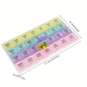 Organizator sa 21ili 28 prostranih pregrada omogućava vam da lekove rasporedite za celu nedelju, sa podelom na jutro, podne, i veče