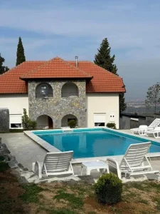 Imanje je smešteno u prirodnom okruženju fruškogorskog zelenila. Vila je zaštićena intimom svojih zidova, dok je jednim delom otvorena ka prelepom horizontu koji se prostire ispred Vas. U dvorištu objekta nalazi se pedantan vrt, bazen sa mermernim koritom i okolnim platoom za opuštanje na ležaljkama, idealan za odmor tokom sunčanih dana. Gostima je na raspolaganju terasa sa baštenskim nameštajem, savršena za ispijanje omiljenog napitka. Takođe, dostupan je i roštiljski sadržaj, dok najmlađima dvorište pruža dovoljno prostora za igru.