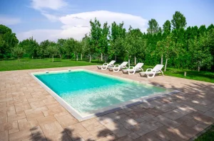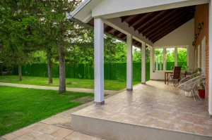 One Pool House je imanje na 13 ari, ilustrovano prostranim placem sa gustim voćnjakom koji je svim stranama izolovan u privatnosti svoga mira. Sklad i dominantnost zelenila ‘’kvari’’centralni bazen sa shallow end delom i mermernim koritom, oko kojeg je plažni plato sa ležaljkama i dovoljno prostora za uživanje na otvorenom - bilo pod suncem ili sjajem zvezda. Najmlađima je omogućen prostor za bezbrižnu igru, za gurmane je obezbeđen smoker roštiljski element, a uživanje u omiljenom napitku je prikladno za natkrivenu terasu koja se nalazi pri samom ulazu u gostinski objekat. Gostima je na raspolaganju i privatna parking zona sa celodnevnim video nadzorom.