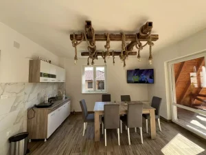 Vila raspolaže prostranim dnevnim boravkom, trpezarijskim delom i kompletno opremljenom kuhinjom. Poseduje 3 zasebna kupatila i dve terase (na prvom spratu i u potkrovlju). Postoje ukupno 4 spavaće sobe sa 6 kreveta, pa je ukupan spavaći kapacitet vile 12 osoba. U suterenu objekta nalazi se apartman pogodan za 3 osobe – koji se može izdavati odvojeno, ili kao deo jedinstvenog najma zajedno sa ostatkom kuće. Vila je klimatizovana, ima kamin, Wi-Fi, TV sadržaj, kao i sve potrebne gostinske sanitarije.