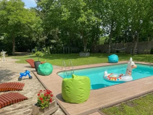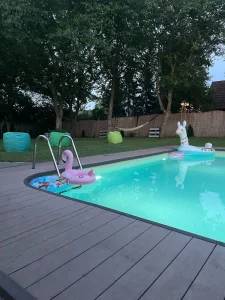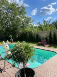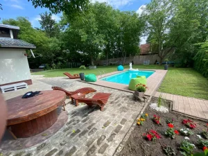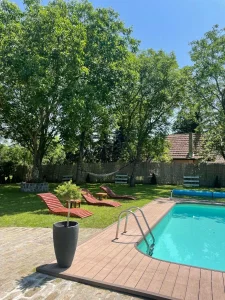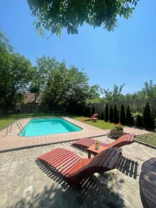 Najveći adut ove vikendice je prelepo dvorište sa privatnim bazenom, savršenim za osveženje tokom toplih dana. Uživajte u sunčanim danima na ležaljkama, opustite se u bašti okruženoj zelenilom ili provedite nezaboravne trenutke sa porodicom i prijateljima.