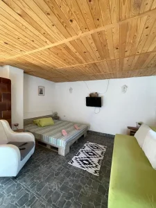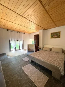 Vikendica je moderno uređena i opremljena tako da zadovolji sve vaše potrebe. Gostima su na raspolaganju dve spavaće sobe sa udobnim bračnim krevetima, dodatni single krevet i dvosed za još više komfora što daje mogućnost noćenja za do -8 osoba. Dnevni boravak odiše toplinom i prijatnom atmosferom, dok potpuno opremljena kuhinja omogućava pripremu omiljenih jela.