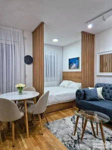 Sadržaj apartmana: U apartmanu se nalazi sve što ti je potrebno za savršen boravak – od najmodernijih tehnoloških rešenja do elegantnog nameštaja koji stvara atmosferu opuštanja i luksuza. Savršen je za parove koji žele privatnost i udobnost. Uživaj u prostoru koji je dizajniran da zadovolji sve tvoje potrebe.