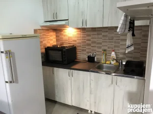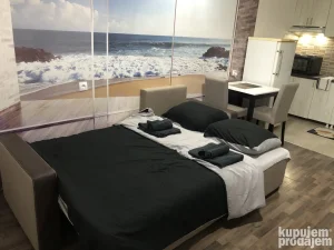 Izdaje se Garsonjera na dan, 24kvd za do 2 osobe, u Višnjici (Višnjica je mirno mesto udaljeno od centra grada 7km), stan je udaljen 600m od autobuske stanice linije 32 (Višnjica-Vukov Spomenik) i 32E (Višnjica-Trg Republike). Stan poseduje klimu, kombinovani frižider, šporet, veš mašinu, Smart TV (kablovska), Wi-fi odličnog kvaliteta, kao i escajg, posteljinu (garnitura se razvlači za spavanje), jastuke i pokrivače, peškire i potrošni materijal za ličnu higijenu (šampon, sapun, gel za tuširanje, toalet papir).