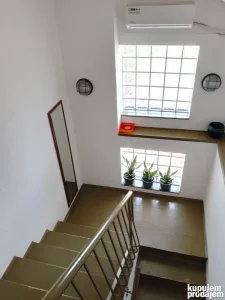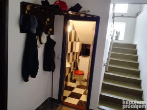 Drugi nivo prizemlje: kuhinja, dnevna soba sa trpezarijom, wc, hodnik stepenište.