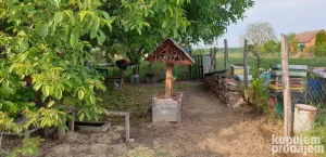 Poseduje vodu na ručnu pumpu, čardak, sto za piknik, objekat koji je za adaptaciju gde se trenutno nalazi roštilj, alat, kosačica, bazen za decu i ostl. . i ogroman prostor pun zelenila,2 velika oraha,2 veća lešnika i par manjih, džanarika i stara sorta jabuke, (petrovača).