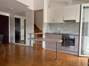 Nov, potpuno opremljen i nekoriscen pemium, dvosoban-dvoetazni stan, VII/VII uknjizen 1/1 na I nivo od 42 m2, plus gratis neuknjizen II nivo kao galerija od 26 m2 koja je istovremeno izgradjena u gabaritu sa smanjenom visinom od 0,95-1,79m kao dve sobe i neuknjizena krovna terasa (zbog niskog izlaza, ) povrsine od 16,20 m2 sa pogledom od 270 stepeni.