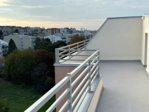 Stan poseduje: otvorenu dnevnu sobu sa trpezarijom i ventilisanom kuhinjom, 2,5 spavacih soba, 1 kupatilo sa vrhunskom keramikom, sanitarijama (niskopodnom kabinom) , termo-izolovanom zastakljenom lodjijom i krovnom terasom sa pogledom od 270 stepeni, sa prilazom is sobe smanjene visine.