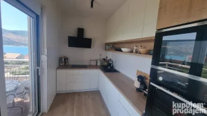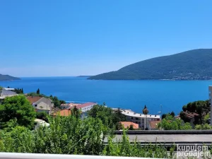 Svetao i prozračan stan sa dve spavaće sobe, velikim dnevnim boravkom, kuhinjom i terasom koja gleda na ulaz u Bokokotorski zaliv. 63+7 m2 terase.