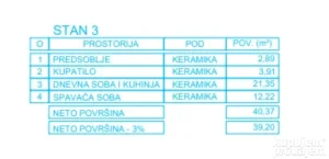 Na prodaju stan u novogradnji u blizini niške pivare, projektovane površine 39.20 m2. Stan je po strukturi jednoiposoban i sastoji se od ulaznog hodnika, dnevnog boravka sa trpezarijom i kuhinjom, spavaće sobe, kupatila i terase. Stanu pripada i podrumska prostorija. Nalazi se u novogradnji SU+P+2 koju čine dve lamele, sa dva ulaza i dva lifta. Građena je skeletnim armirano-betonskim sistemom sa ispunom standardnim blokovima tako da zidovi nisu noseći, a krov je jednovodni, kos. Zidovi između stambenih jedinica su debljine 25 cm što obezbeđuje dobru zvučnu izolaciju. Spoljna fasada je Demit sa izolacijom 10 cm kamene vune. Spoljašnja stolarija je PVC u antracit boji sa termopan staklima i roletnama, dok je unutrašnja stolarija drvena. Na svim podovima predviđene su keramičke podloge. Grejanje je podno, na gas, predviđeno kao centralno. Parking mesta su na parceli i dodatno se naplaćuju. Rok završetka je kraj 2027. Godine. Za kupce prvog stana postoji povrat PDV-a i moguća je kupovina putem stambenog kredita. Ovo je samo deo naše ponude, za vise informacija, stojimo vam na raspolaganju.
