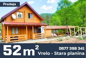Agencija Moj Agent posreduje u prodaji brvnare na Staroj planini u selu Vrelo od 52 kvadrata (plac 3,3 ara) po ceni od 79 000 evra.