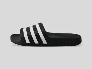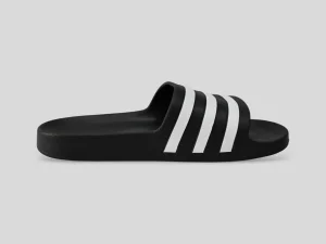 Adidas Adilette Aqua Slides Kids (GS+PSV) - original dečije papuče, crne boje sa prepoznatljivim belim Adidas šarama, idealne za šetanje u letnjim danima, na plaži i bazenima, maksimalno praktične, brzo se suše. Izrađene su od izuzetno kvalitetne gume, izuzetno otporne na habanje. Gazeći deo đona je specijalno dizajniran i izrađen od posebne gume za klizave i mokre površine. Unisex papuče za dečake i devojke.