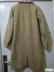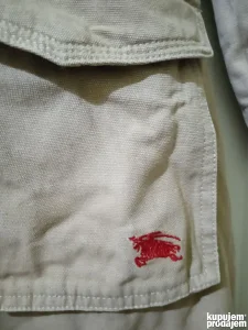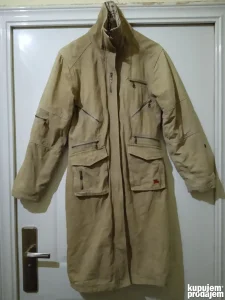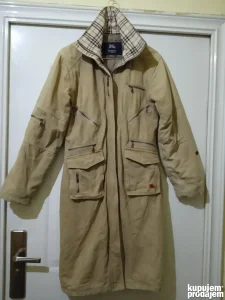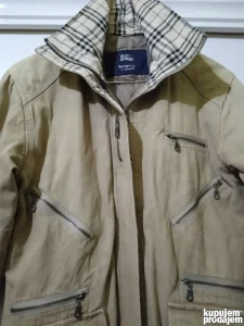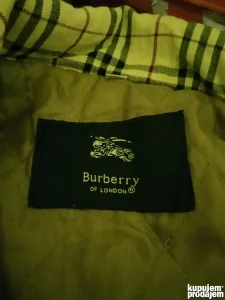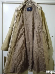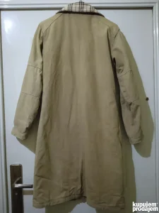 Mantil luksuznog engleskog brenda Burberry London, osnovanog 1856. , cuvenom po kvalitetu tkanine i mantila. Iznutra stepan i sa tanjim punjenjem, spolja veoma jaka, pamucna tekstura. U dobrom je stanju, velicina M. Prilazem mere radi uporedjivanja: