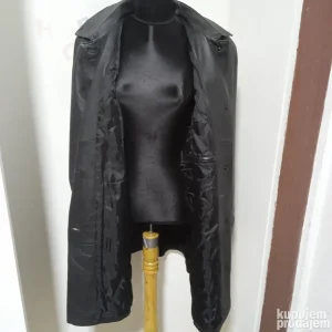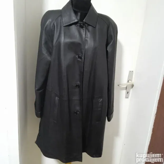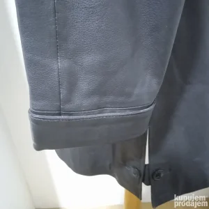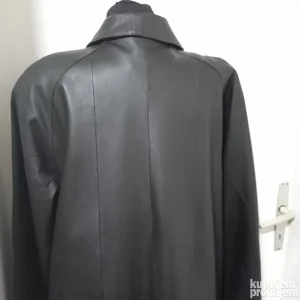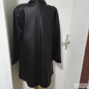 Očuvan postavljeni kožni mantil, veličina 42, dimenzije-širina ramena 48cm, obim u visini pazuha 114cm, dužina rukava 59cm, dužina mantila mereno s leđa 91cm.