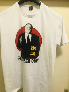 Kvalitetna, bela, pamučna atraktivna majica, u odličnom stanju, lepša uživo, motiv na grudima: Toni Soprano, (Džejms Gandolfini), , ,