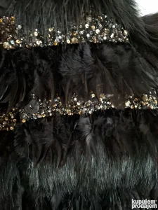 Oricinal kaput kupljen u Americo, Juicy Couture crni , nadsiven krznom, perjem, cirkonima. Bez ostecenja
