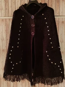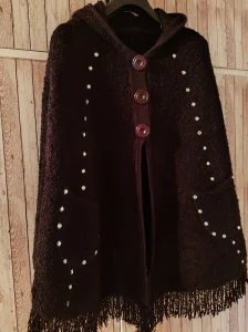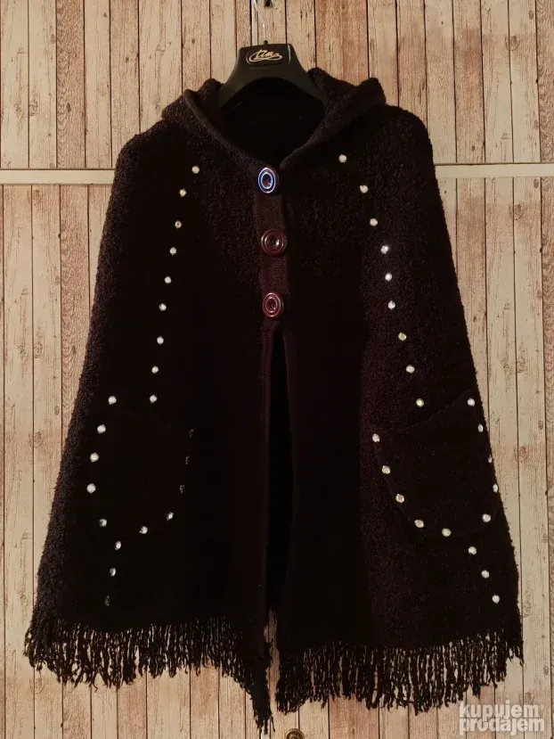 Braon topao pončo, praktičan, sa kapuljscom i dva spoljna džepa.
