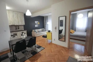Izdajem stan na dan u Uzicu, apartman Tufna, centar grada, udaljen od centralnog trga 200m. U blizini autobuske i zeleznicke stanice. Zgrada je nova, stara svega par godina, dobro odrzavana. Grejanje zimi je izuzetno, a takodje apartman poseduje i klima uredjaj. Apartman ima 47m2, poseduje spavacu sobu sa francuskim lezajem, dnevni boravak (krevet na razvlacenje, koji se pretvara u komotan francuski lezaj) trpezarija i kuhinja, kupatilo, terasa sa garniturom za sedenje. Ispred zgrade je veliki javni parking sa SMS dnevnom kartom 150 din. Pogledajte zasto na bokingu već četiri godine za redom imamo ocenu 10. Cena zavisi od broja gostiju i broja dana koje zakupite. U smestajnoj jedinici moze boraviti do 4 (+1 pomocni lezaj)
