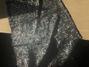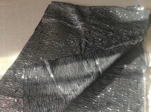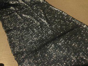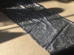 ODLIČAN i POTPUNO NOV INOSTRANI MATERIJAL ZA ŠIVENJE, preostao, srebrno - crni i malo presijavajući