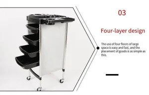 - Ova kolica za kozmetički salon imaju dizajn s glatkim kotrljanjem, što omogućava jednostavno kretanje i vrhunsku mobilnost unutar radnog prostora. Ovaj svestrani poslužavnik može se koristiti kao organizator za kolica za frizere, stomatologe, radnu stanicu za tetoviranje, spa centar, kolica na kotačima za kozmetičke salone, berberske salone i kućna kolica itd.