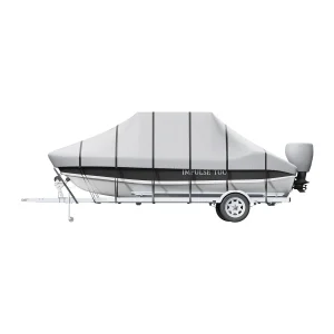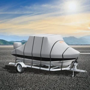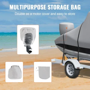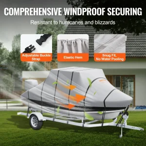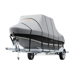T-Top poklopac za čamac: Odgovara čamcima dužine 24 do 26 stopa i širine do 106 inča. Naši pokrivači za čamce su pogodni za većinu čamaca sa T-topom itd. Obavezno izmerite dimenzije trupa vašeg čamca da biste izabrali savršenu veličinu za maksimalnu zaštitu. Napomena: Kada birate veličinu poklopca za čamac, uvek se oslanjajte na stvarne dimenzije čamca, a ne na specifikacije modela ili proizvođača. Oksfordska tkanina 600D Marine Grade: Naš T-top pokrivač za čamac je napravljen od izdržljive 600D Oksford tkanine da izdrži habanje. Poseduje dvoslojni PU premaz za poboljšanu otpornost na vodu i UV zaštitu i efikasno štiti od korozije i oštećenja od sunca. Dizajn dvostrukih šavova i vodootporne trake sprečavaju ulazak vode i održavaju vaš čamac suvim, posebno u morskom okruženju. Sigurnost otporna na uragan: Podesivi kaiševi naše vodootporne presvlake za čamac osiguravaju čvrsto prianjanje. Čvrsti elastični rub na unutrašnjoj ivici pokrivača osigurava čvrsto zaptivanje, prilagođava male varijacije veličine i osigurava čvrsto prianjanje uz trup. Ove karakteristike pružaju čvrstu zaštitu za vaš brod, čak iu teškim vremenskim uslovima kao što su oluje ili mećave. POVOLJNO REŠENJE ZA SKLADIŠTENJE: Svaka prikolica T-top pokrivača za čamac uključuje torbu za odlaganje za lako pakovanje. Kada ne koristite poklopac trupa, možete ga brzo preklopiti i odložiti na brod ili u garažu kako bi bio bez prašine i spreman za sledeću upotrebu. Torba za skladištenje služi i kao poklopac motora Instalacija bez napora: Pričvršćivanje i uklanjanje pokrivača za čamac od 24-26 stopa je lako sa našim trakama sa kopčom. Poklopac T-vrh čamca centralne konzole je idealan za kućice za čamce, dokove ili dvorišta; nudi pouzdanu zaštitu od jakog sunca ili vremenskih prilika.