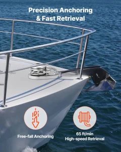 Ovaj sidreni vinč koristi sistem slobodnog pada za brzo spuštanje sidra. Sa vučnom silom od 700 lbs i brzinom podizanja od 65 ft/min, omogućava brzo i stabilno sidrenje čak i pri jakim strujama.