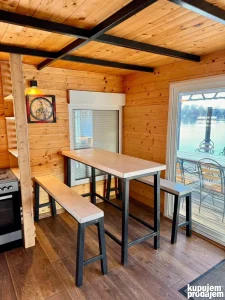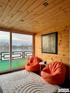 Tri terase, 2 za sunčanje, 1 natkrivena. Internet, wifi, kablovska, 2 TV i 2 klima uređaja i kompletan nameštaj u savršenom stanju. PVC stolarija, komarnici, prostrana kompletno opremljena i funkcionalna kuhinja, veliko kupatilo sa hidromasažnom kabinom, ulazak na ključ šifru, kapija/rampa na zaključavanje na samom mostu pre splava zbog dodatne bezbednosti. . . Sve je rađeno po najvišim standardima u šta se možete i uveriti pri obilasku!