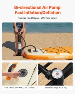 Brzo naduvavanje/ispuštanje vazduha: Naduvajte ili ispustite vazduh za samo 8 minuta pomoću ugrađenog manometra (preporučeno: 12–15 PSI). Daska za veslanje na naduvavanje ima kapacitet težine od 163 kg i idealna je za početnike, veslače srednjeg nivoa, decu i tinejdžere.