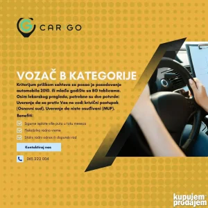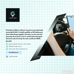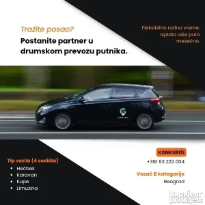 Kriterijum prilikom zahteva za posao je automobil 2010. ili mlađe godište sa BG tablicama.