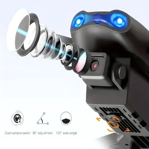 - Dron sa dvostrukim kamerama, širokougaonom kamerom od 120 stepeni, ručno podesivim uglom kamere od 90 stepeni.