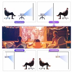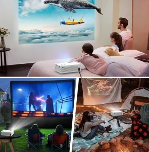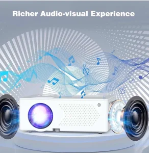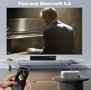 Блутут повезивање: Са ажурираним уграђеним звучником, можете уживати у аудиовизуелном биоскопском искуству без повезивања спољних звучника. Поред тога, овај преносиви пројектор интегрисан са Блутут 5.2 технологијом чини синхронизацију звука бржом и стабилнијом. Са овим Блутут пројектором можете бежично повезати своје идеалне Блутут звучнике или Блутут слушалице у било ком тренутку како бисте постигли лепши звук. Напомена: Блутут веза је само за пренос звука са аудио уређајима (Блутут звучници или Блутут слушалице), који се не могу користити за пресликавање екрана паметног телефона.